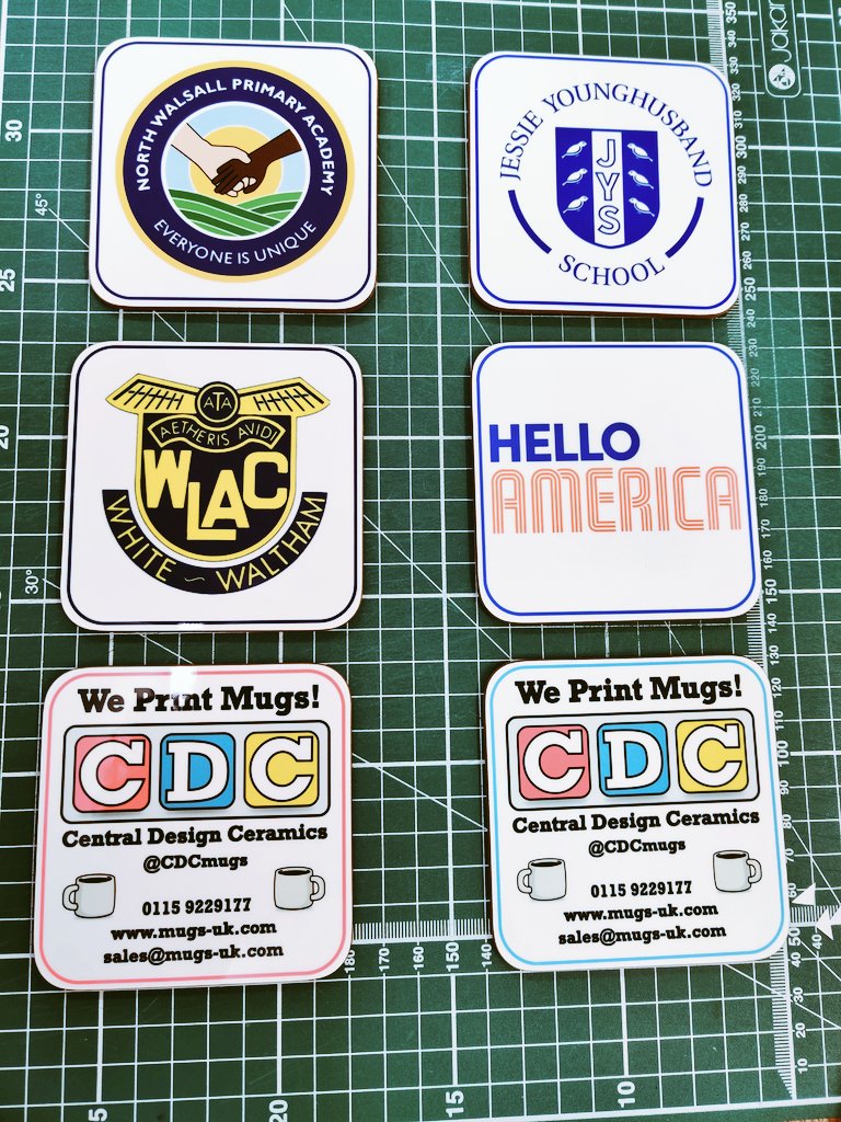 Working on some coasters today to match some of our customers mugs! Think your business or school could do with some of these??
