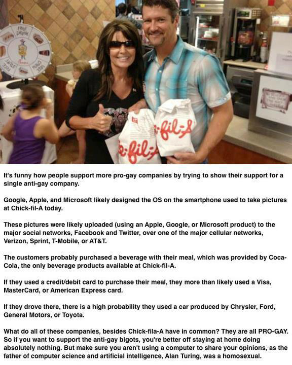It's funny how people support more pro-gay companies by trying to show their support for single anti-gay company.pic.twitter.com/7wcQGYpZ