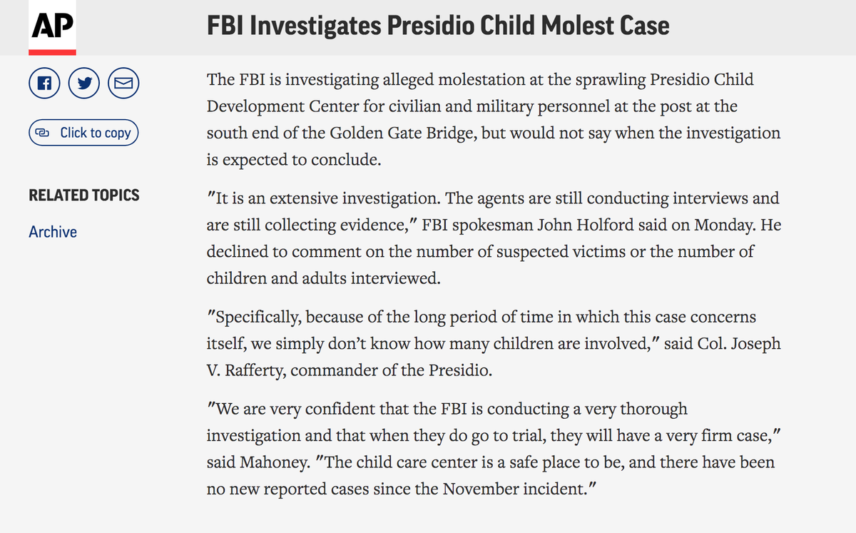 An army-run daycare with a verified record of child abuse that was closed in 1987 has reopenedpic.twitter.com/RKJ92mfYEg