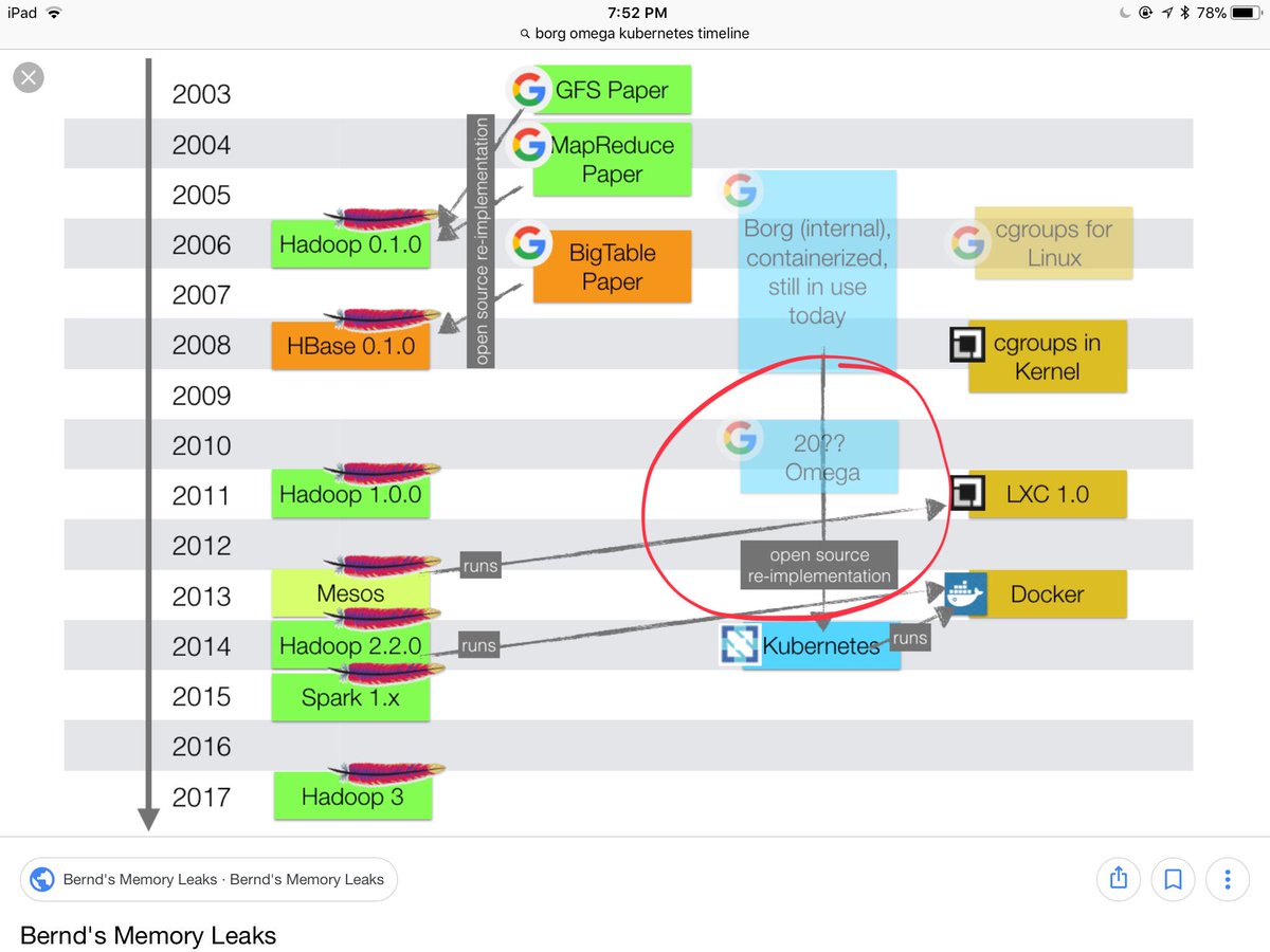 If it’s not a trade secret, I would love if anyone could confirm if the Borg timeline looks right in this slide I found online. Also, which year was Omega built? @jbeda @ahmetb #Kubernetespic.twitter.com/iVv5JMY73r
