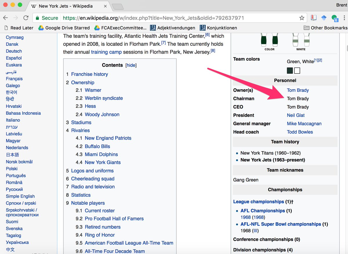 Google uses Wikipedia to help answer these types of queries, and someone vandalized the Jets' Wikipedia page a little while ago… (2/7)pic.twitter.com/eehrWpC7kW