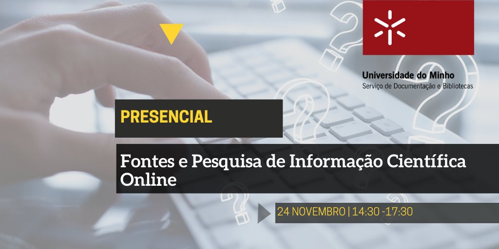 Dar a conhecer estratégias de pesquisa e recursos bibliográficos, disponíveis na rede da UMinho e em acesso livre, de suporte às atividades de ensino, investigação e aprendizagem são os principais objetivos desta ação. Participe! 𝐈𝐧𝐬𝐜𝐫𝐞𝐯𝐚-𝐬𝐞: https://sdum.uminho.libcal.com/event/3802633 pic.twitter.com/QUY02YROUw