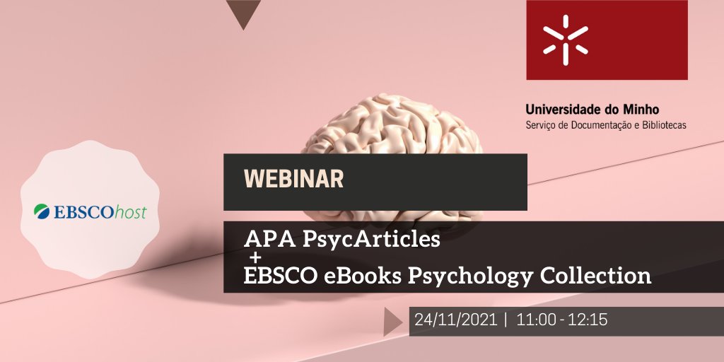 𝗔𝗠𝗔𝗡𝗛𝗔̃ Estão abertas as inscrições para a ação de formação sobre a base de dados PsycArticles e a coleção EBSCO eBooks Psychology Collection que decorrerá amanhã. 𝐈𝐧𝐬𝐜𝐫𝐞𝐯𝐚-𝐬𝐞 𝐚𝐪𝐮𝐢: https://sdum.uminho.libcal.com/event/3802501 +𝗜𝗡𝗙𝗢: formacao@usdb.uminho.pt Participe!pic.twitter.com/Soa9ncG1zi