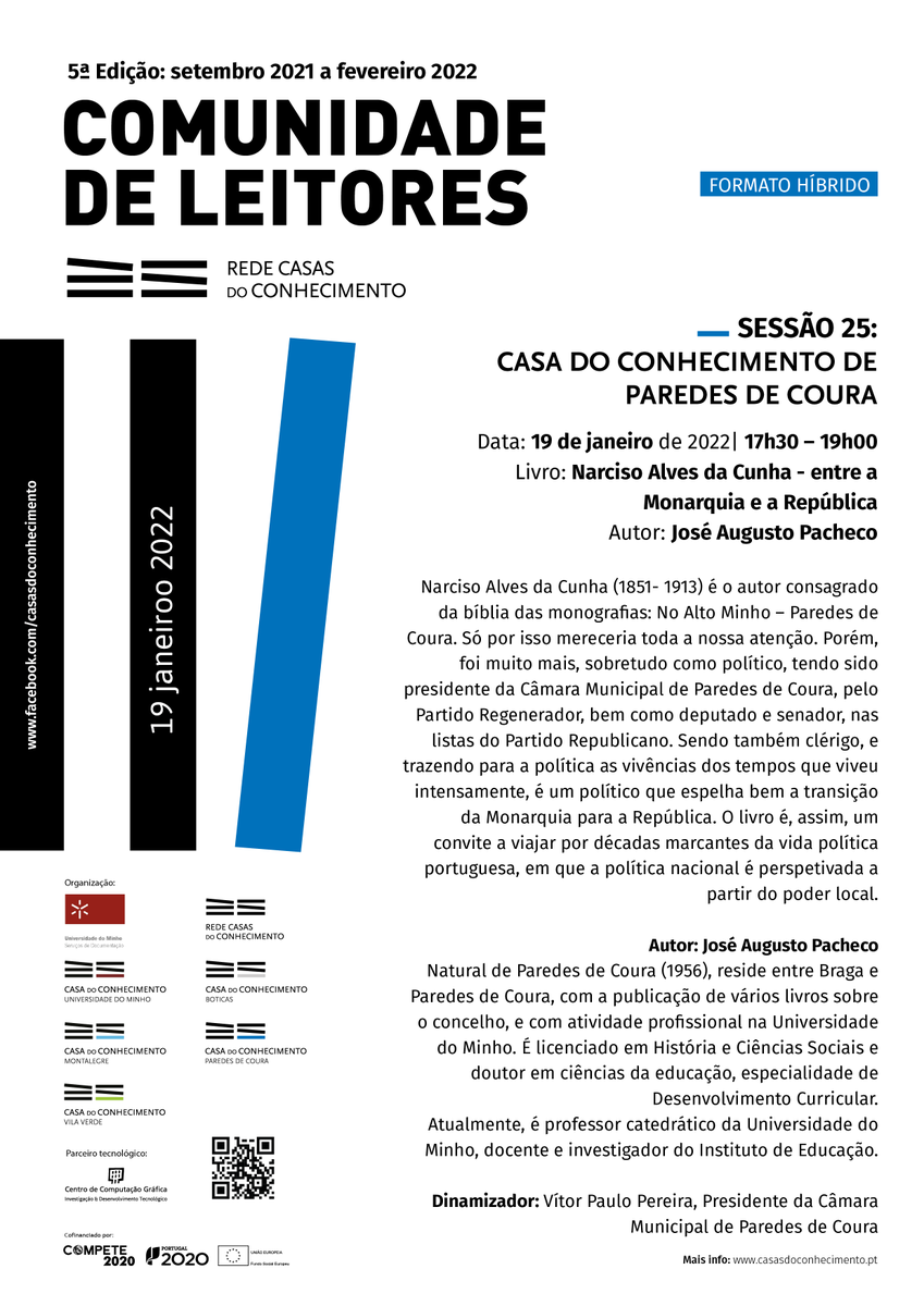 @rede_cdc realiza-se no dia 19 de janeiro e será dedicada ao livro "Narciso Alves da Cunha - entre a Monarquia e a República" do autor José Augusto Pacheco. INSCRIÇÕES EM: http://bit.ly/CLRCdC-S25 +info: http://bit.ly/rcdc25s pic.twitter.com/gPMD1ndb1l