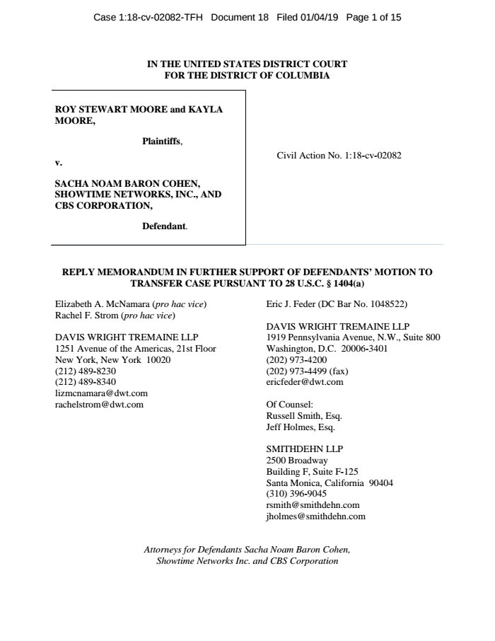 New filing in Roy Moore v. Sacha Baron Cohen: Reply to opposition to motion https://www.documentcloud.org/documents/5675719-Reply-to-opposition-to-motion.html …pic.twitter.com/RklZbQOPyF