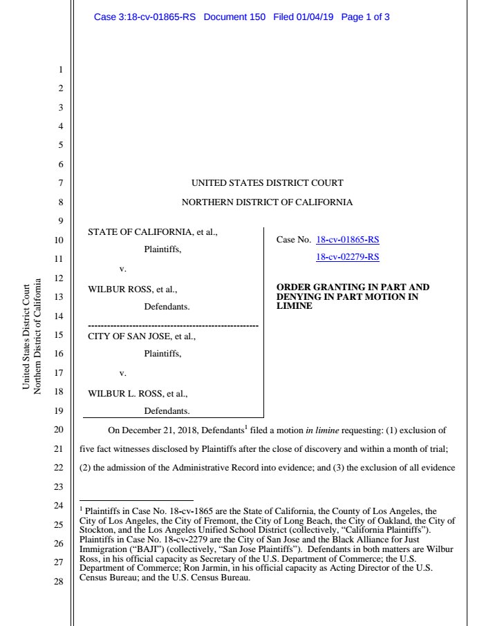 New filing in California v. Ross et al: Order on Motion in Limine https://www.documentcloud.org/documents/5675648-Order-on-Motion-in-Limine.html …pic.twitter.com/88VmW6nIcr