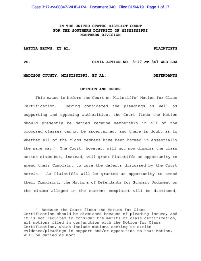 New filing in ACLU v. Madison County, Miss.: Order on Motion to Strike https://www.documentcloud.org/documents/5675699-Order-on-Motion-to-Strike.html …pic.twitter.com/QBkPxEWkJ1