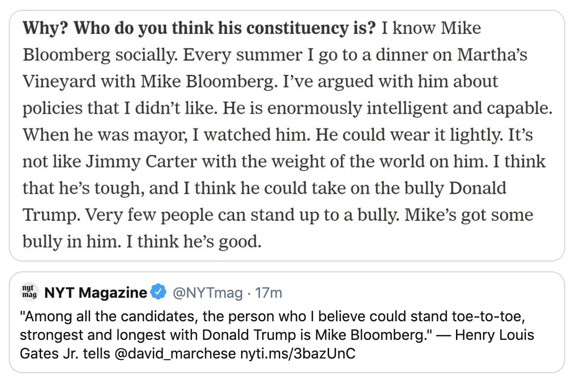 Bloomberg, a former Republican, straight up purchased a slot in the forthcoming debate as well as the endorsements of several big-city mayorshttps://twitter.com/MaraGay/status/1224495234475753472 …