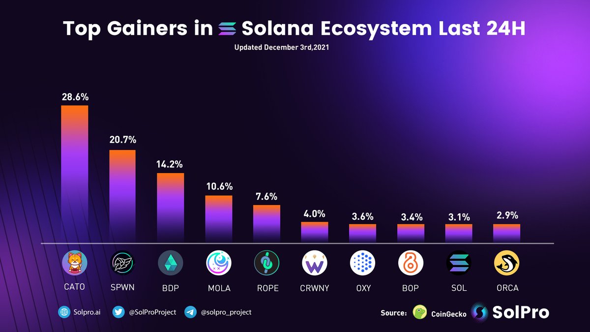 SOLANA OVERVIEW DAILY DASHBOARD Top price gainers today: