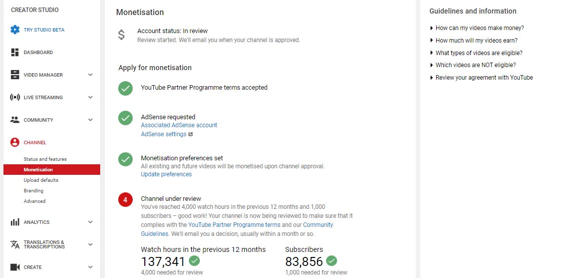 @TeamYouTube Dear TeamYouTube i have completed 1,000 subscriber and 4,000 watch hours but my channel still showing under review more to 110 days please my channel review and enable my channel monetization Channel url:https://www.youtube.com/channel/UCQsCJJRQK14yPyXEVfQH3jQ …pic.twitter.com/nrdJ0MsrqG