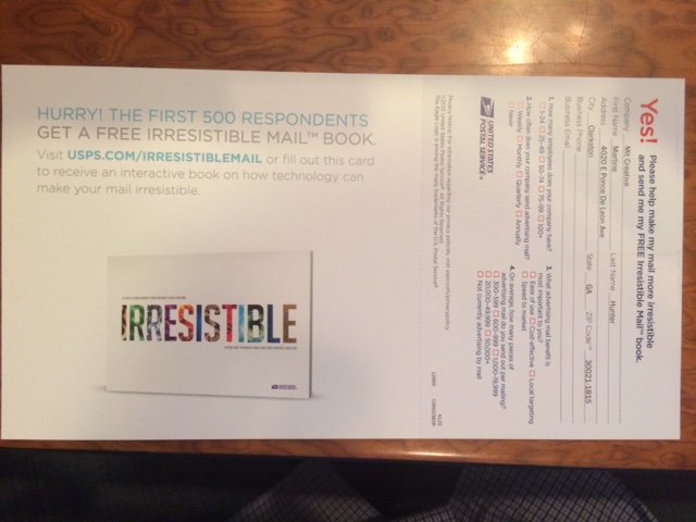 Check out this "IRRESISTABLE" mailer and offer from the USPO.