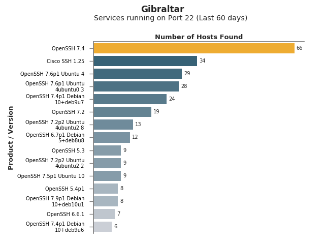 Field Report (Last 60 days) - Country: Gibraltar - Filters: Services running on Port 22