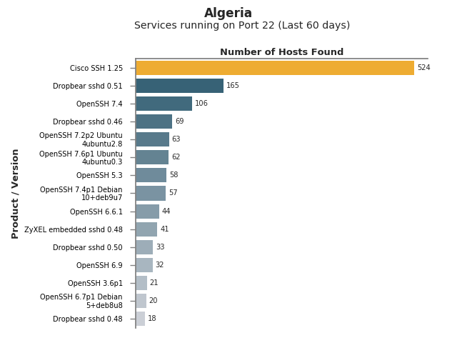 Field Report (Last 60 days) - Country: Algeria - Filters: Services running on Port 22