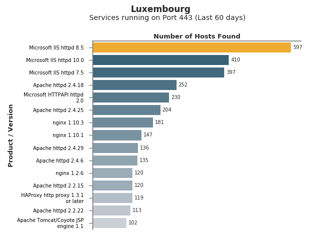 Field Report (Last 60 days) - Country: Luxembourg - Filters: Services running on Port 443