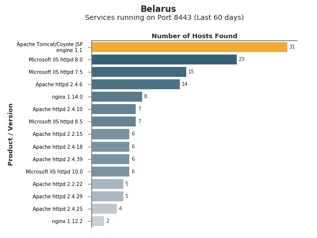 Field Report (Last 60 days) - Country: Belarus - Filters: Services running on Port 8443