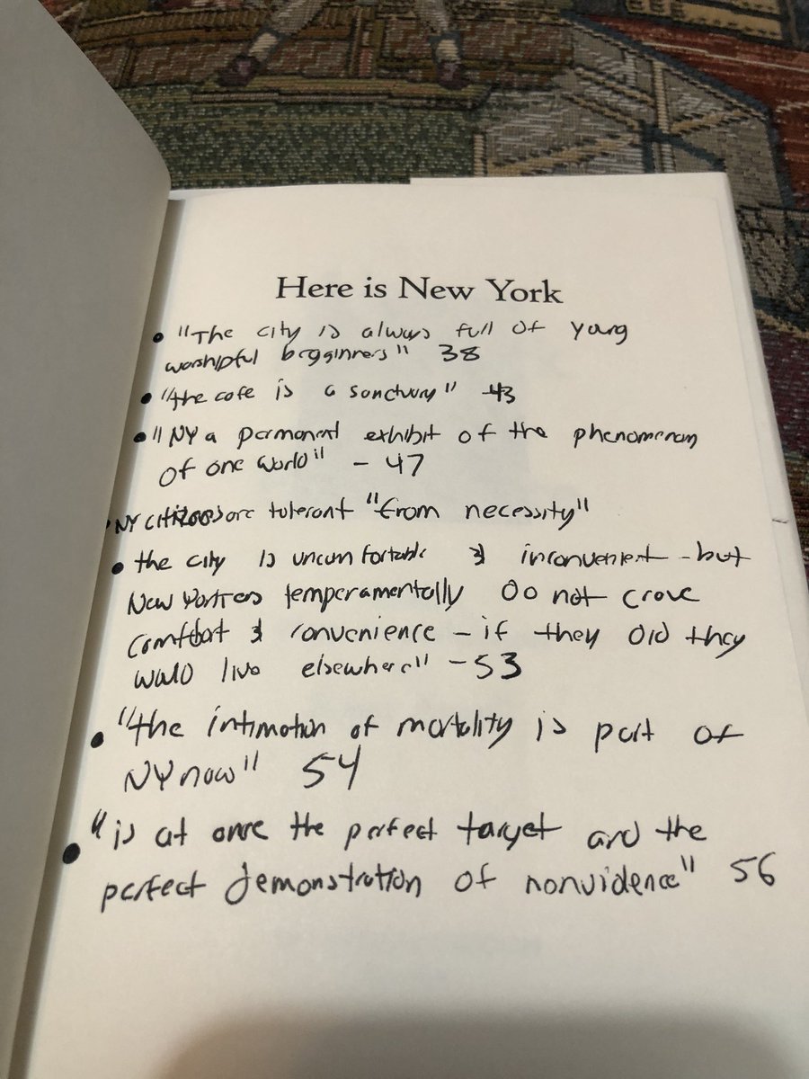 Have only stayed in NYC a few weeks. So I don’t feel qualified to offer any takes other than this: I enjoyed the book and think there is a lot to learn about writing from reading E.B.’s writing. Here’s some of the memorable lines that made me think:pic.twitter.com/OfHdJ5zf9s