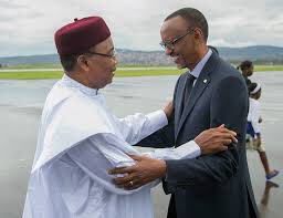 #Rwanda@PaulKagame parle du Présidt du#Niger@IssoufouMhm comme champion du processus de la#ZLEC dont les efforts ont permis a la région du Sahel de ne jmais tomber aux mains des terroristes@G5_Sahel_SPpic.twitter.com/Lhf5l6PG3j
