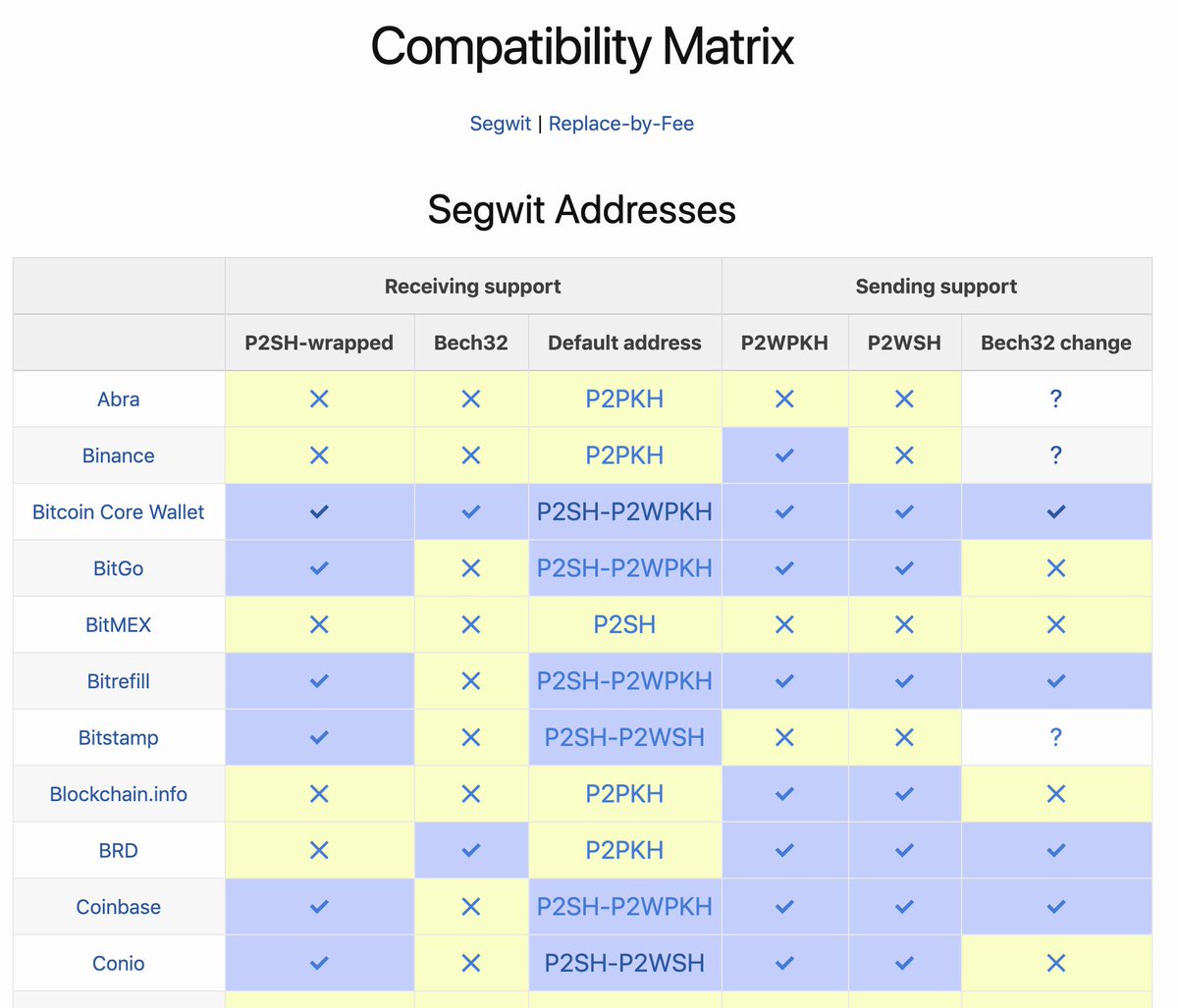 We're excited to launch our Compatibility Matrix! The site provides documentation of wallets' and services' support for scaling technologies (initially bech32 & RBF) The data will help Bitcoin users make informed decisions about supporting scaling tech. https://bitcoinops.org/en/2019-compatibility-matrix/ …pic.twitter.com/AeJzg1W2lz