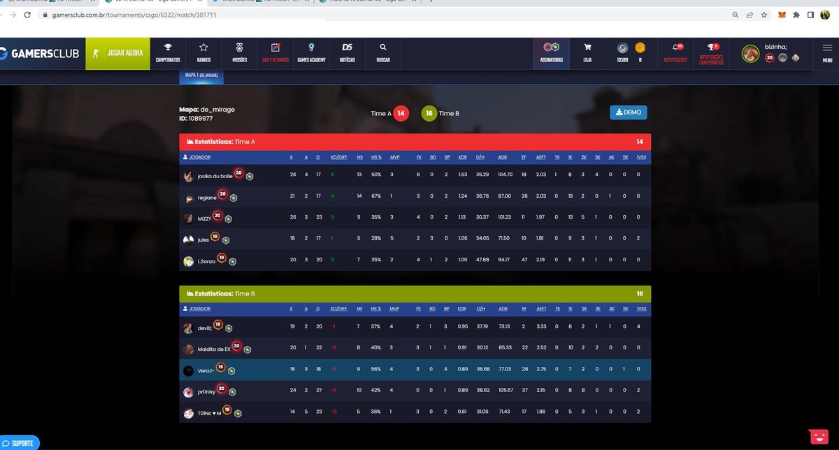 4x melhor do ano na Gamersclub Awards de CS:GO. Finalista