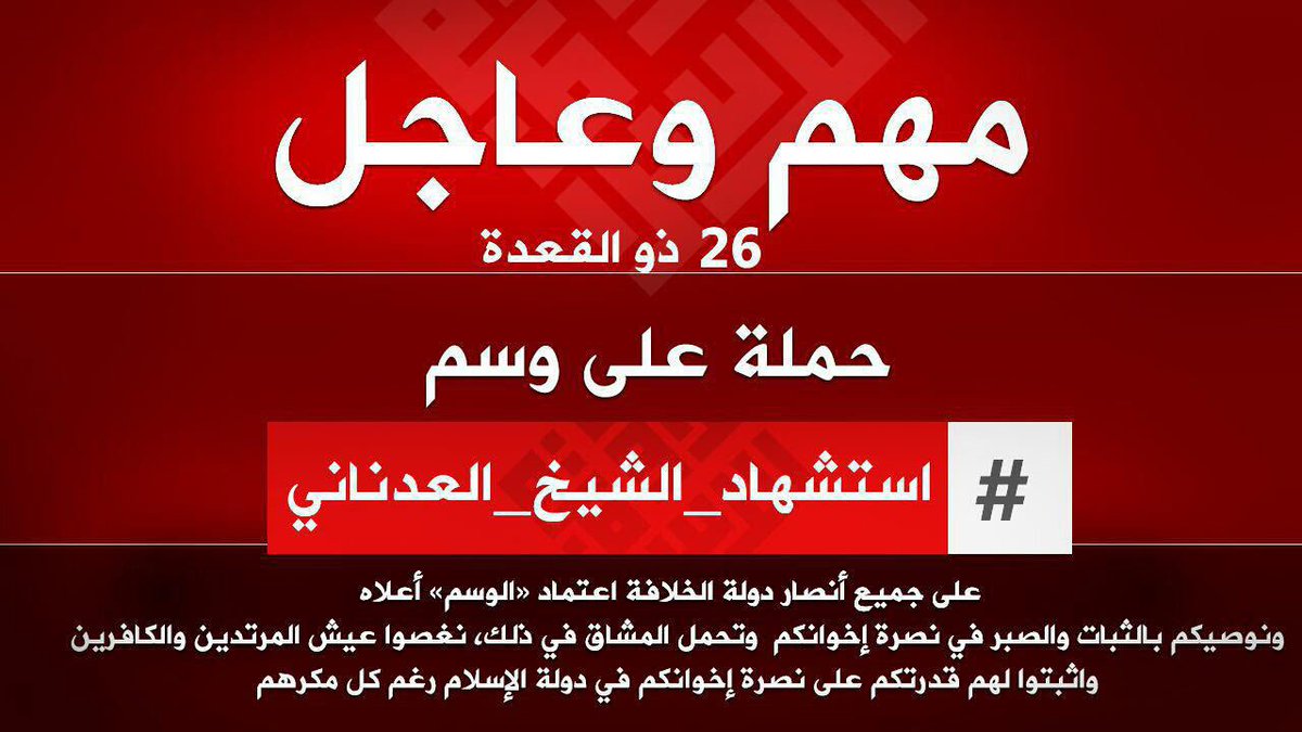 That's a first: ISIS' channels calling for a hashtag campaign for al-Adnani.pic.twitter.com/Bm65803Uji