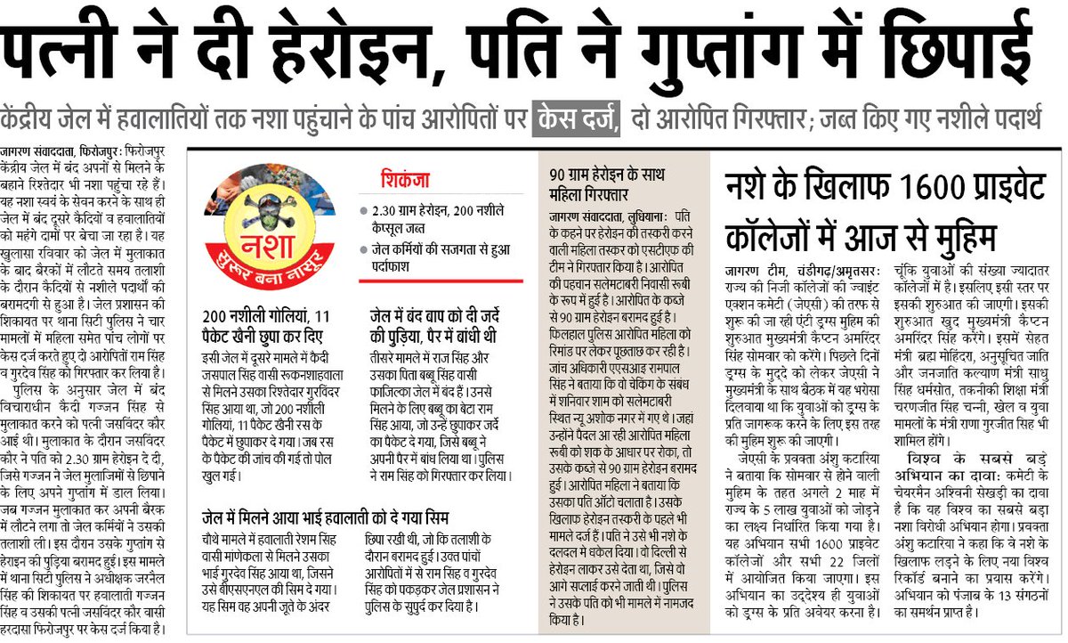 पंजाब के मुख्यमन्त्री @capt_amarinder सिंह की नशा मिटाने की कसम 16 महीने में तार तार हो चुकी है अब तो कैप्टन की जेलों में बन्द मुजरिमो को भी नशा उपलब्ध हो रहा है।pic.twitter.com/cG62Uj6o6v