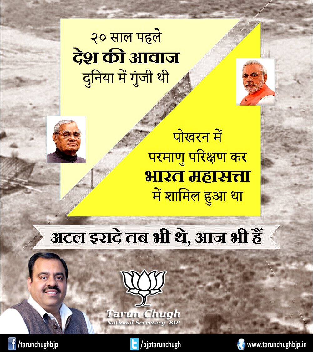 तरुण जी पूर्व प्रधानमंत्री अटल बिहारी वाजपेयी जी के #अटलइरादों से ही संभव हुआ पोखरन में परमाणु परीक्षण..