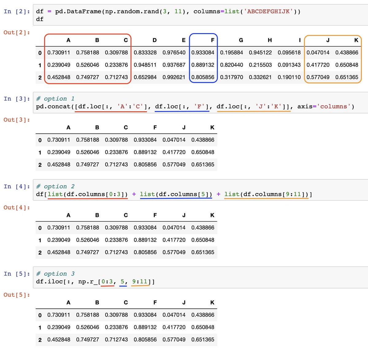 Want to select multiple slices of columns from a DataFrame?