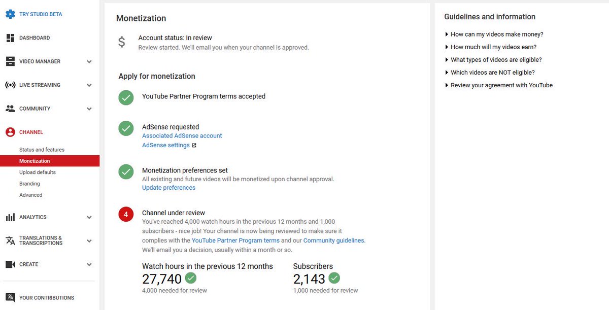 @TeamYouTube Dear Team YouTube I have already complated 4k hour And 1k Subscriber in Previous 365 Days and my channel is under review till One month.