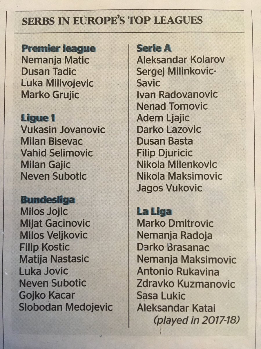 Only Brazil, France and Argentina have more footballing exports than Serbia