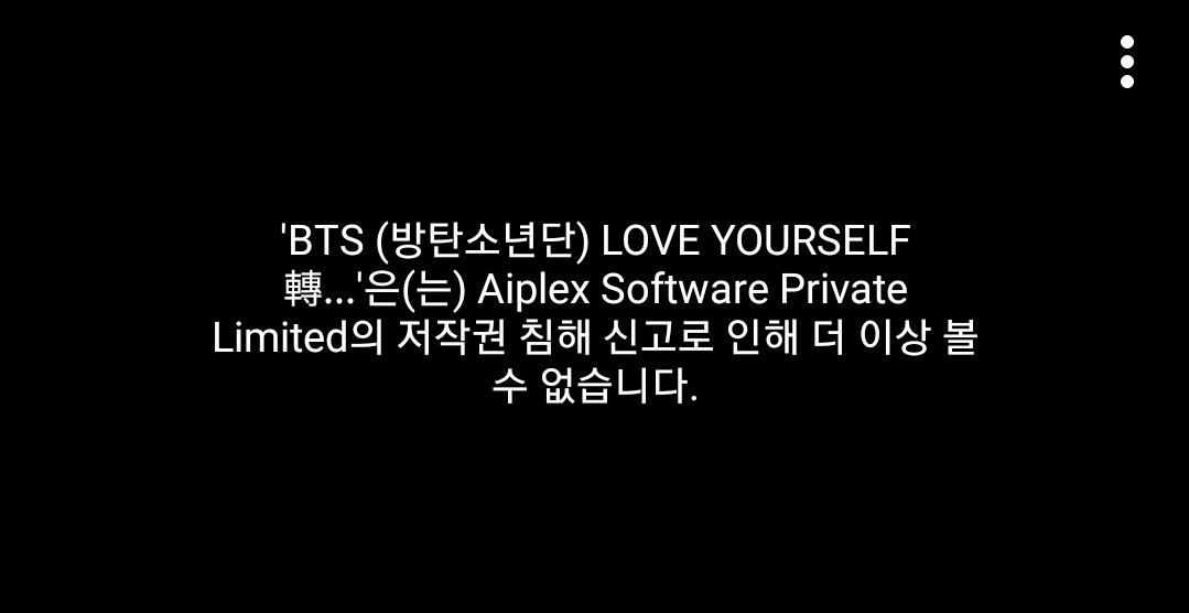 @TeamYouTube @YouTube please could you look into the false copyright claim by Aiplex Software Private Limited for the Singularity Music Video by @BTS_twt?pic.twitter.com/PRfCkKzUu6