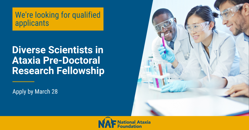 Deadline approaching. Help us spread the word! We're looking for applicants for our Diverse Scientists in Ataxia Pre-Doctoral Research Fellowship.