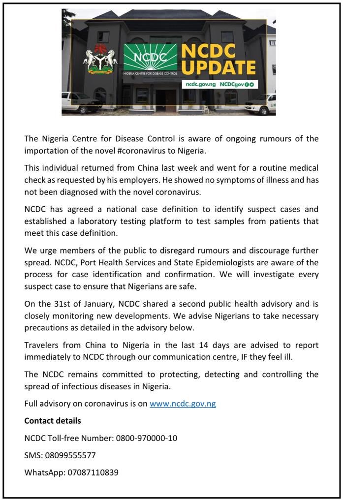The day the article appeared, the Nigeria Centre for Disease Control (