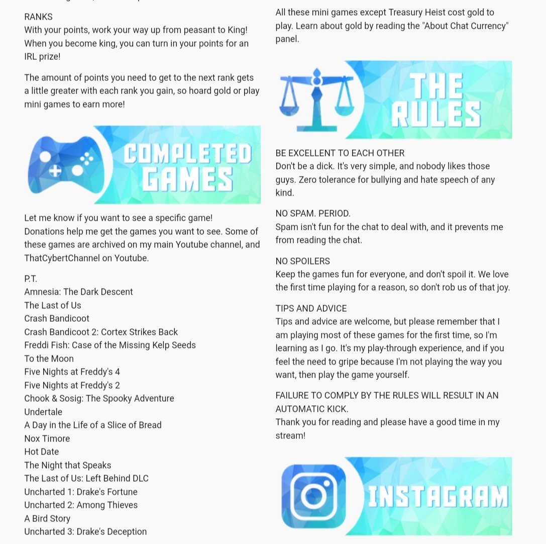 Last night I re-made all of my Twitch panels from scratch. Took a while, but i think it turned out great! What do you think? Also my commissions are open if you want me to make you some. #twitch #panel #stream #twitchstream #twitchaffiliate #design #graphicdesign #twitchdesignpic.twitter.com/1QRnTv3z3X