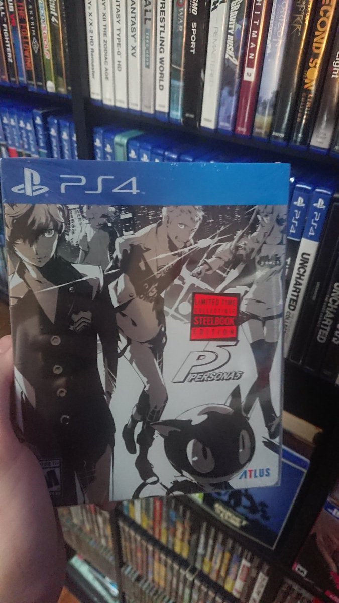 This is my actual copy of P5's steelbook edition, still sealed from day one. That, uh...that wasn't the best purchase I've ever made. It'll probably stay sealed at this point, because it's funny now