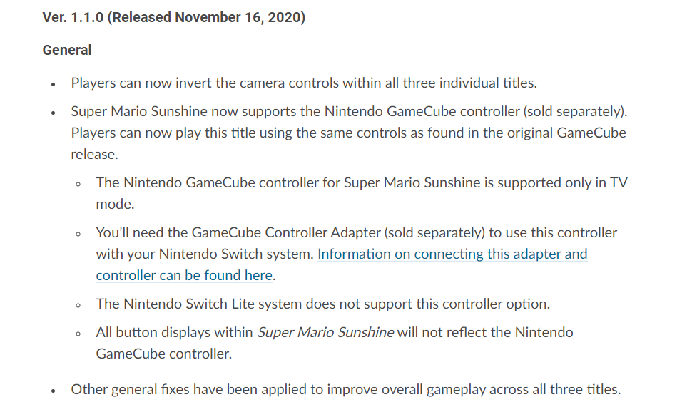 Super Mario 3D All-Stars has been updated to allow support for GameCube controller on Super Mario Sunshine https://bit.ly/3pDg0cb pic.twitter.com/ufZugI72DI