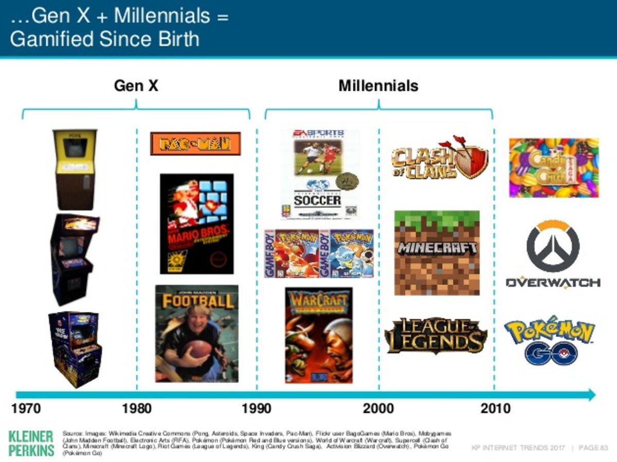 Gen X & Millenials have been gamified since birth. via Mary Meeker's Internet Trends (http://www.kpcb.com/internet-trends )pic.twitter.com/WTFYr7d25E