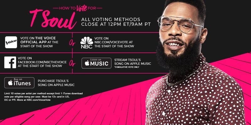 @TSoulMusic isn’t getting your VOTES tonight, RETWEET and get him to the finale.#VoiceTop8pic.twitter.com/Qeu3YcRrYF