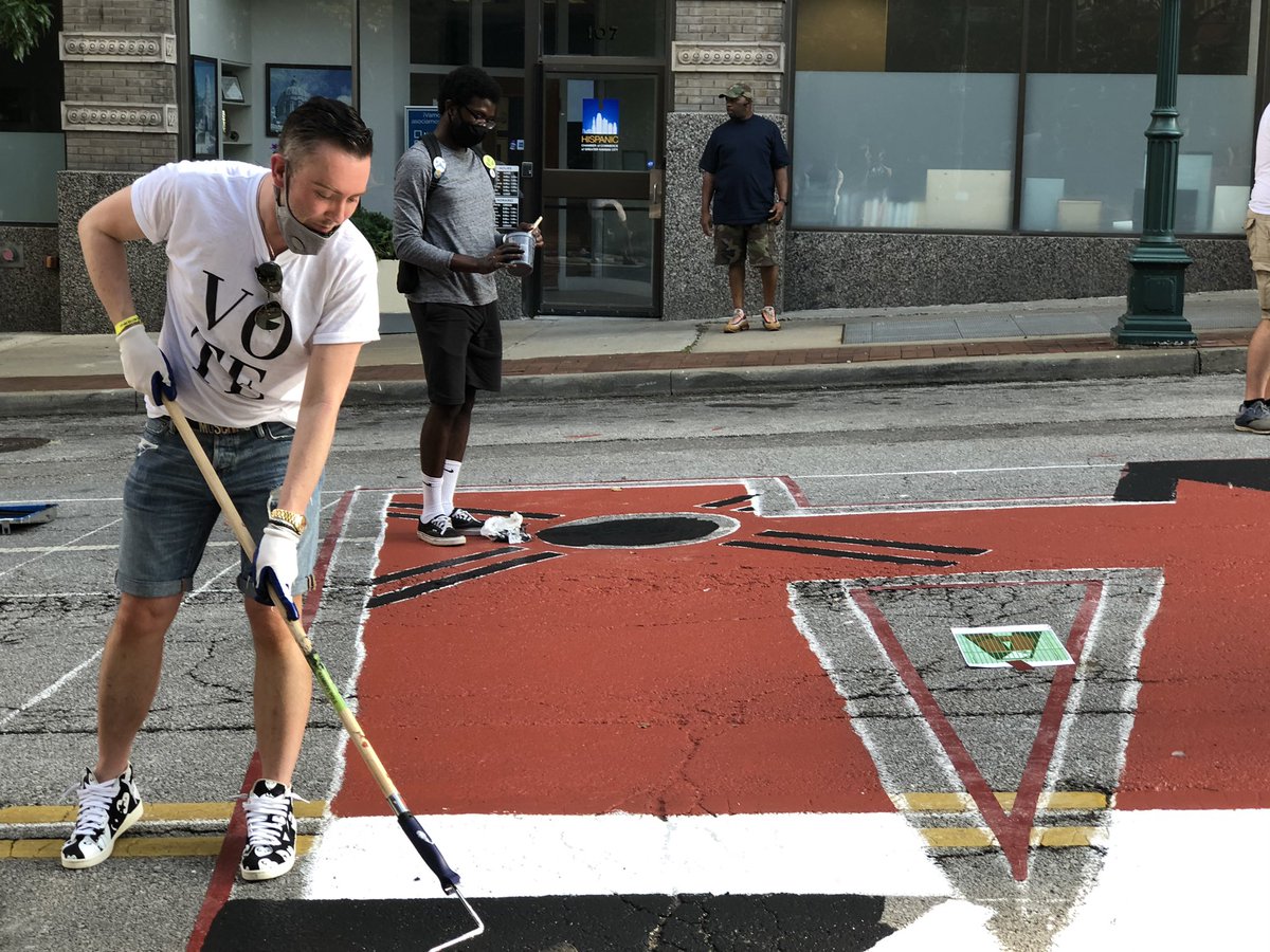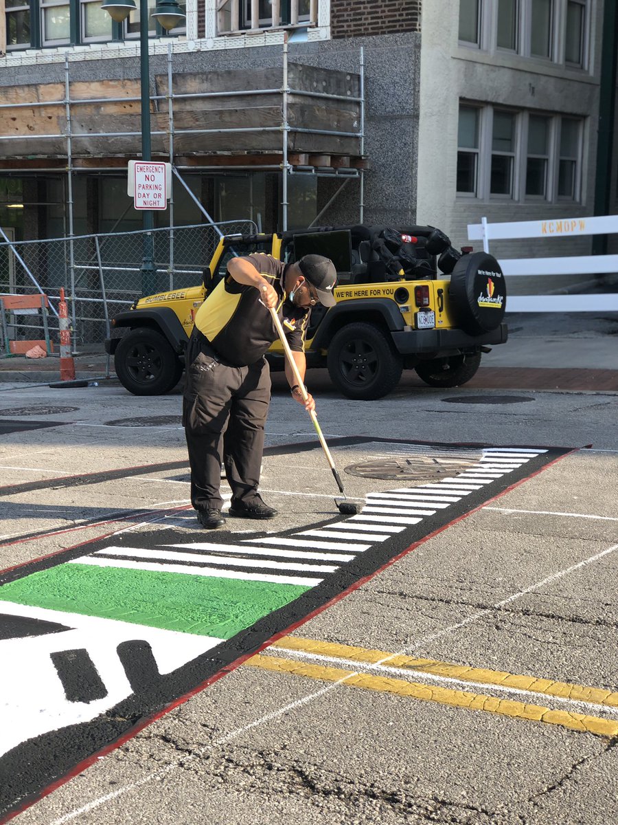 mural is coming together at 10th & Baltimore. Our friends w/ @DowntownKC_CID have been here all day! Take the#kcstreetcar to the@KCLibrary stop to check it out!#BLMpic.twitter.com/2Ps5wfsxtn – at Kansas City Public Library: Central Library