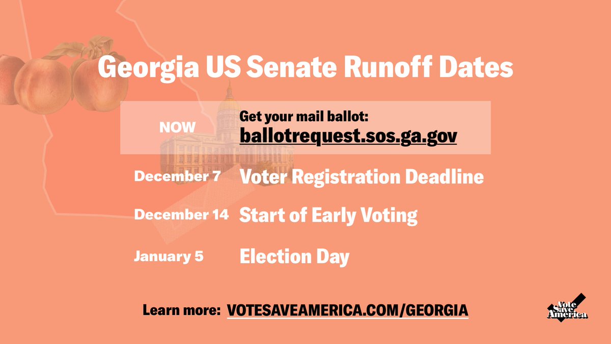 Georgia voters, check to make sure you're registered and request your mail ballots NOW to vote in the runoff: http://ballotrequest.sos.ga.gov For more information visit: http://votesaveamerica.com/georgia