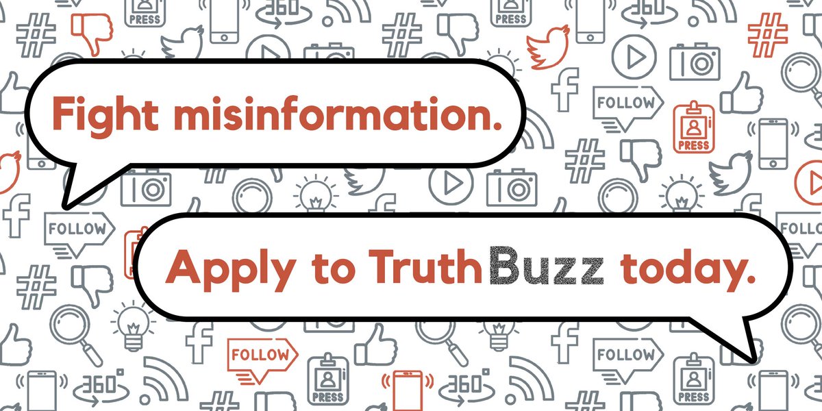 #TruthBuzz Fellows to work in combating misinformation in the U.S. If you know a savvy media expert with a track record of success leading innovative projects in newsrooms, encourage them to apply. Deadline is October 8: https://buff.ly/2uDUUjl pic.twitter.com/iD3zdrLLH9