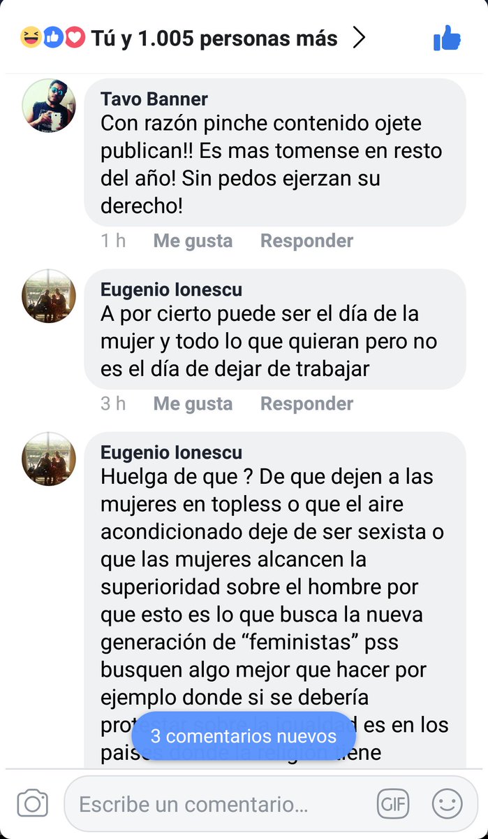 Casi 24hrs después siguen malgastando oxígeno. Hay hasta un pavo con el hashtag de que no haya más publicaciones de mujeres.