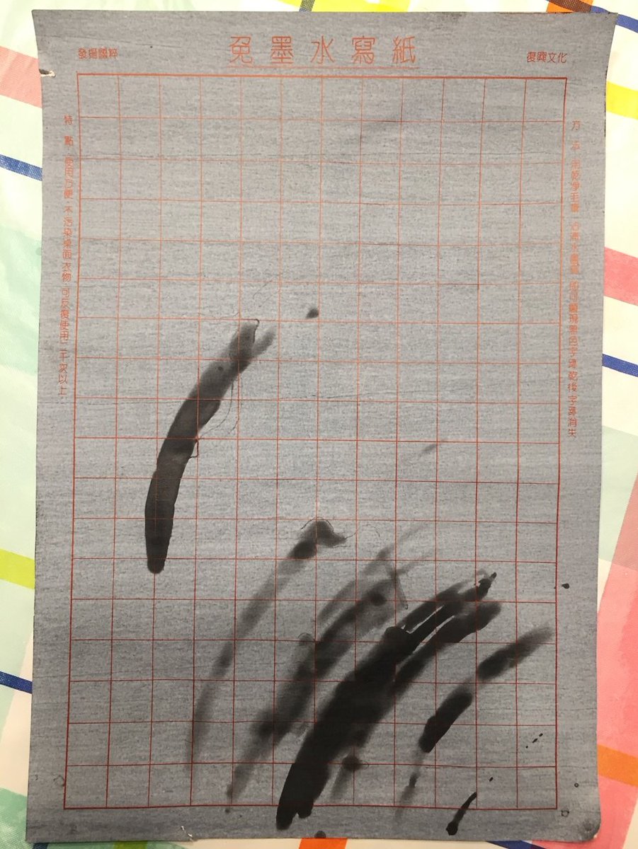 Here are photos of our sheets (sorry for the poor lighting). The texture of the gray side reminds me of a blackboard, but it still feels like paper. When the gray side is wet, it turns black. It fades to gray again as it dries. Wetting the back side doesn't have any effect. 3/6pic.twitter.com/FZi5tzZe0t
