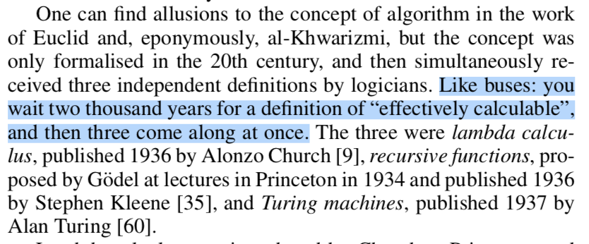 "Like buses: you wait two thousand years for a definition of 'effectively calculable', and then three come along at once."pic.twitter.com/StDoOrnblP