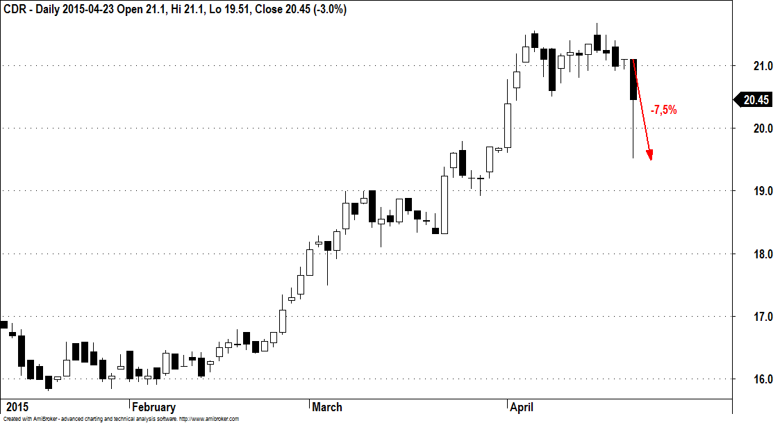 #CDR przez chwilę spółka traciła nawet 7,5% w trakcie sesji.pic.twitter.com/cSEtOLRiAU