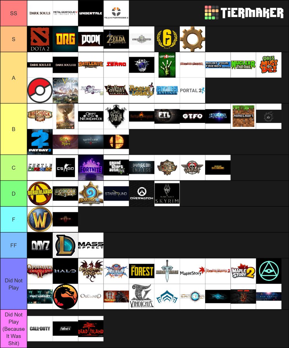 Discord group is sharing tier lists of the games we commonly played this decade, heres' minepic.twitter.com/igmF8Ti6EJ