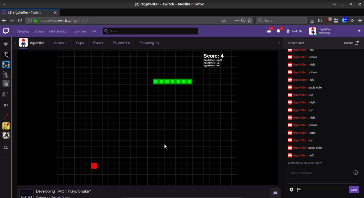 @desplesda TWITCH PLAYS SNAKE (or rather, http://wormy.py by@AlSweigart)pic.twitter.com/L2YA4hhQoM