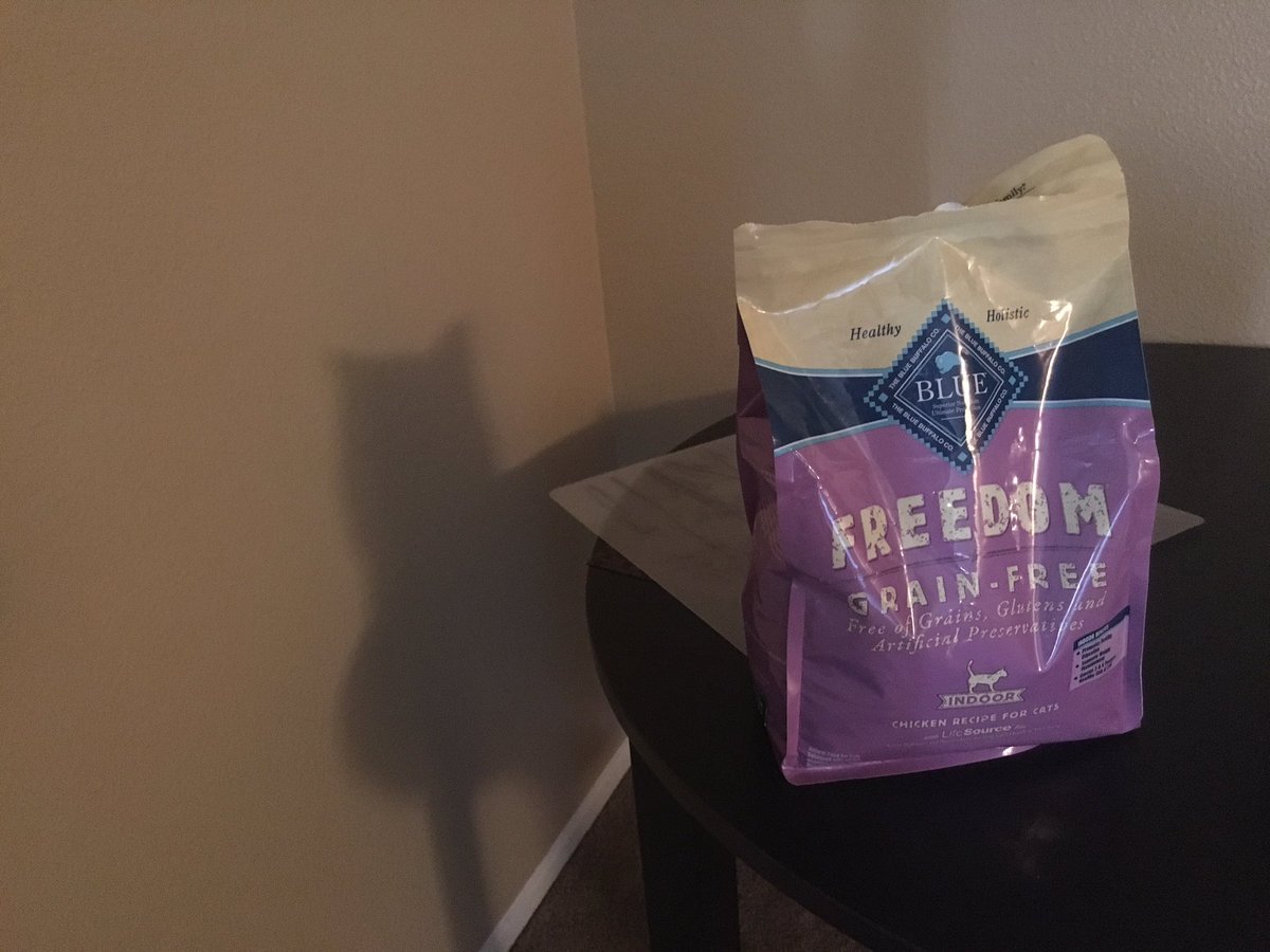 @bluebuffalo cat food is casting a shadow that coincidentally looks like a cat