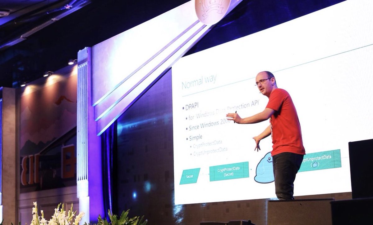 @dwizzzleMSFT on stage dropping internally fixed 0days, where he explains how to make it really hard for developers to shoot themselves in the foot#BlueHatILpic.twitter.com/eP24k2HMGo