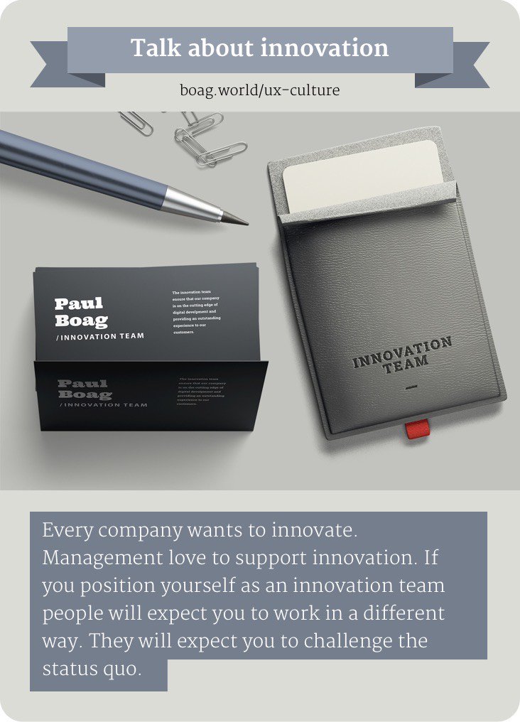 Every company wants to think of itself as innovators. Frame UX in that context and management will be more receptive http://boag.me/2tsc6Ga pic.twitter.com/POQ7RR5Obf