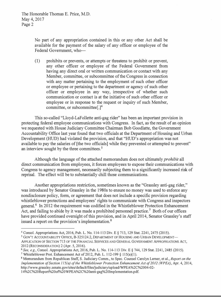 In memo, HHS tells staff not to talk to Congress without prior consultation, and Sen